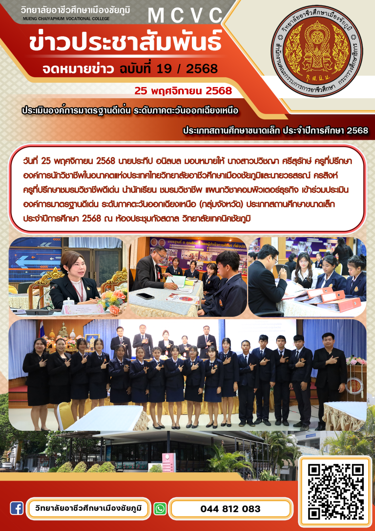 การประเมินสถานศึกษาอาชีวศึกษา เพื่อรับรางวัลพระราชทาน ปีการศึกษา 2567 ระดับเขตความรับผิดชอบ ของกลุ่มจังหวัด 8 วิทยาลัยอาชีวศึกษาเมืองชัยภูมิ