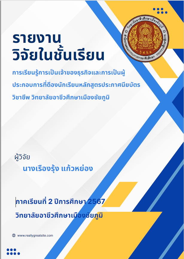 การนำเสนอผลการดำเนินงานศูนย์บ่มเพาะผู้ประกอบการอาชีวศึกษา วิทยาลัยอาชีวศึกษาเมืองชัยภูมิ ประจำปีการศึกษา 2565