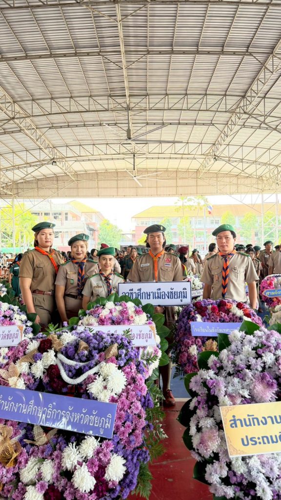 วันที่ 25 พฤศจิกายน 2568 นายประทีป อนิลบล ผู้อำนวยการวิทยาลัยอาชีวศึกษาเมืองชัยภูมิ ได้มอบหมายให้นายสันติ เบ็ญจศิล รองผู้อำนวยการวิทยาลัยอาชีวศึกษาเมืองชัยภูมิ พร้อมด้วยคณะครู ผู้กำกับลูกเสือวิสามัญ และลูกเสือวิสามัญ ได้เข้าร่วมกิจกรรมน้อมลำลึกในพระมหากรุณาธิคุณ “ศตวรรษามหาธีรราชานุสรณ์” ครบรอบ 100 ปี เนื่องในวันคล้ายวันสวรรคตพระบาทสมเด็จพระมงกุฎเกล้าเข้าอยู่หัว “วันสมเด็จพระมหาธีรราชเจ้า” ประจำปี 2568 ณ โรงเรียนชัยภูมิภักดีชุมพล