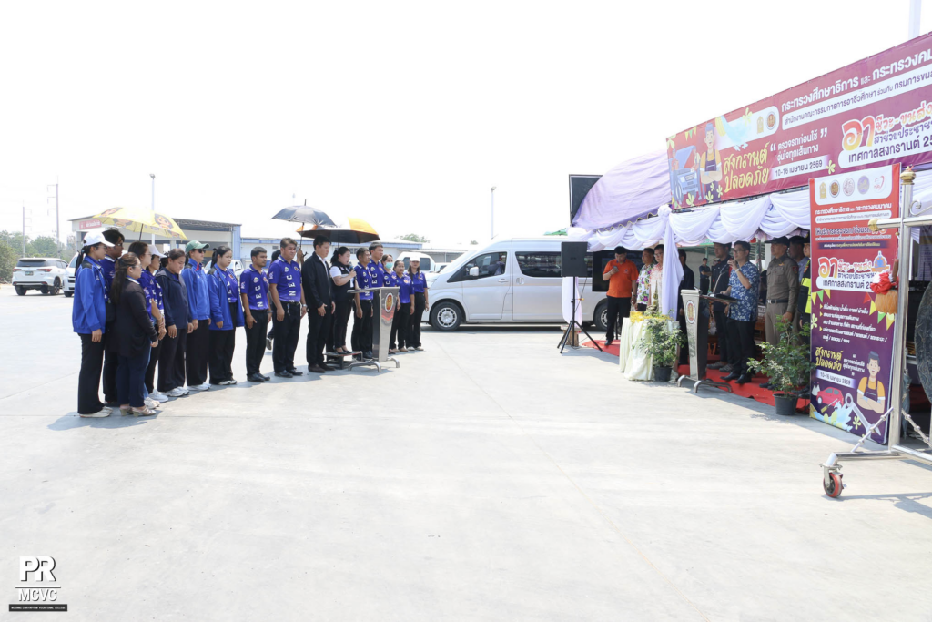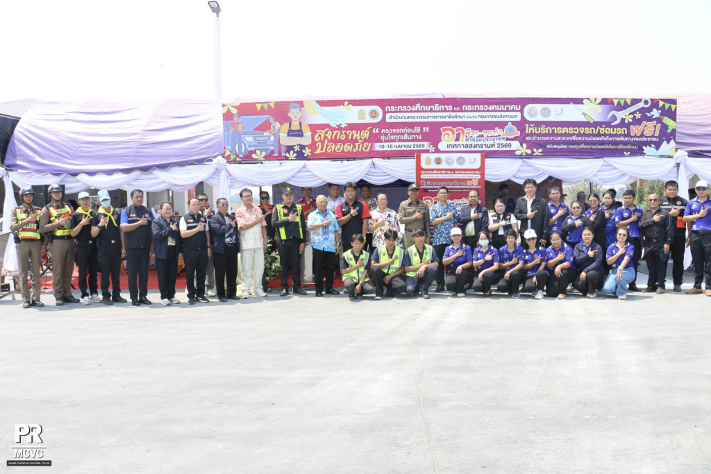 วันที่ 10 เมษายน 2569 นายประทีป อนิลบล ผู้อำนวยการวิทยาลัยอาชีวศึกษาเมืองชัยภูมิ พร้อมด้วยคณะผู้บริหาร คณะครู และบุคลากรทางการศึกษา ได้ร่วมพิธีเปิดศูนย์ “อาชีวะ – ขนส่ง อาสาช่วยประชาชน : เทศกาลสงกรานต์ 2569” รับผิดชอบโดย วิทยาลัยการอาชีพบำเหน็จณรงค์ โดยมีว่าที่เรือตรีธราธิป พหลภิญโญ นายอำเภอบำเหน็จณรงค์ เป็นประธานในพิธีเปิด และนางสาวนาภาพร จ่าเมืองฮาม รองผู้อำนวยการวิทยาลัยการอาชีพบำเหน็จณรงค์ เป็นผู้กล่าวรายงาน ณ จุดที่ตั้ง สถานีบริการน้ำมัน PT บ้านเพชร อำเภอบำเหน็จณรงค์ จังหวัดชัยภูมิ