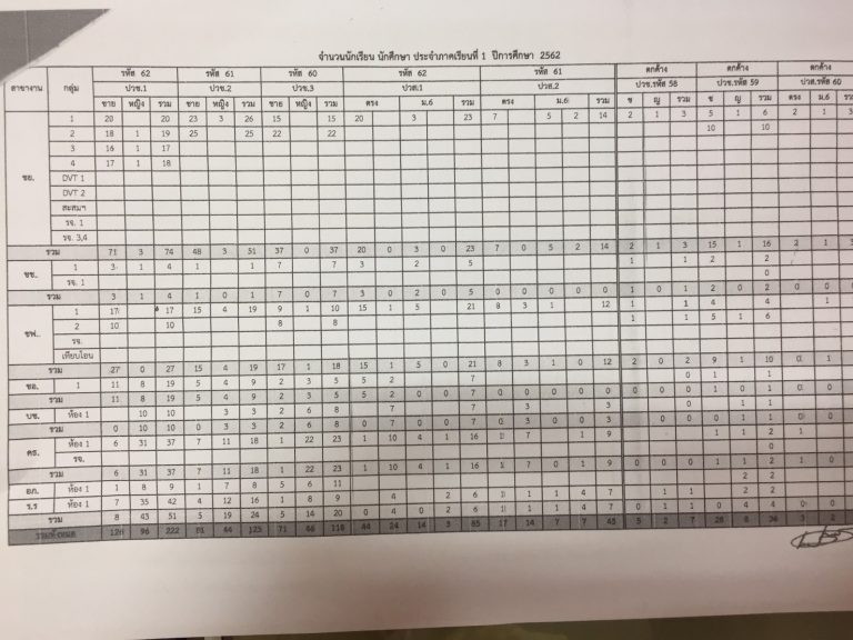 ข้อมูลนักเรียน นักศึกษา ประจำภาคเรียนที่ 1 ปีการศึกษา 2562