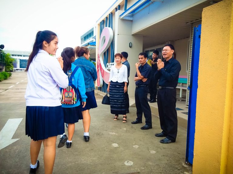 เช้า 23 พค. 60 ท่านผู้อำนวยการปราโมทย์ ขุนเพ็ง ได้ให้เกียรติมาพบกับนักเรียนบริเวณหน้าเสาธงหลังเคารพธงชาติ