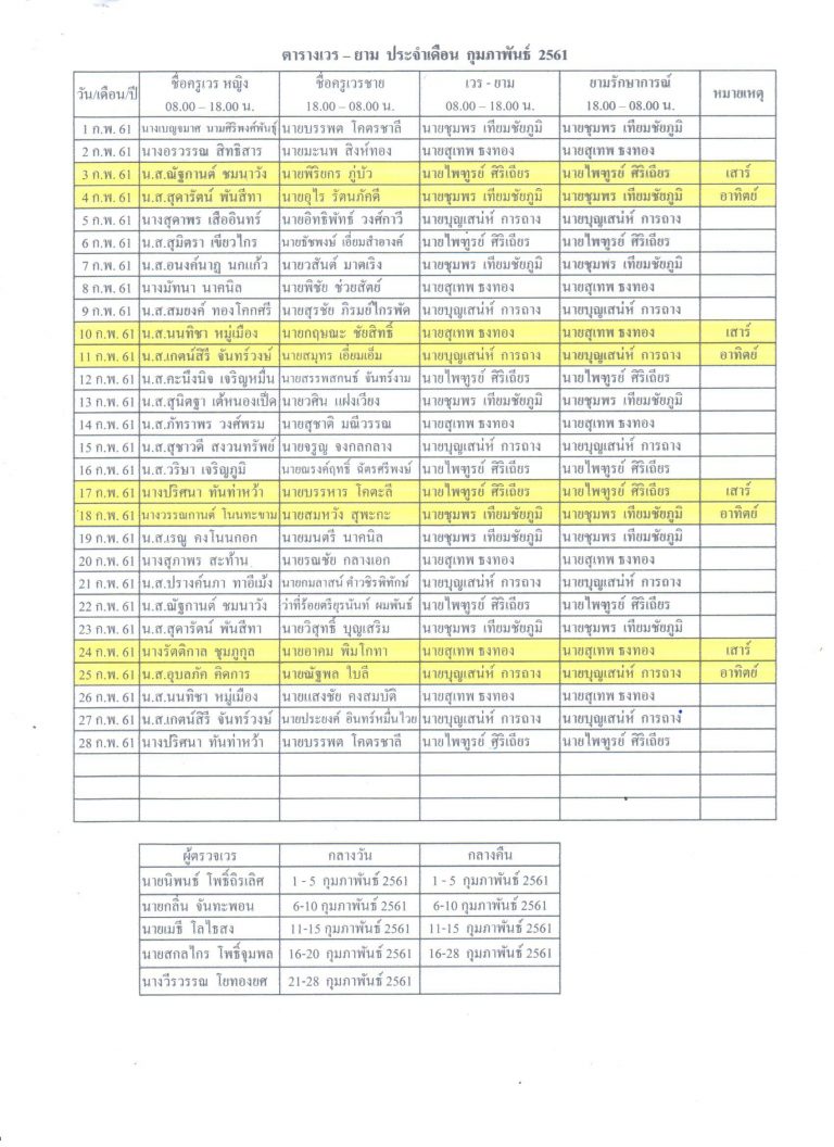 คำสั่งแต่งตั้งข้าราชการครู ลูกจ้างประจำ พนักงานราชการ และลูกจ้างชั่วคราวอยู่เวร-ยามประจำเดือน กุมภาพันธ์ 2561