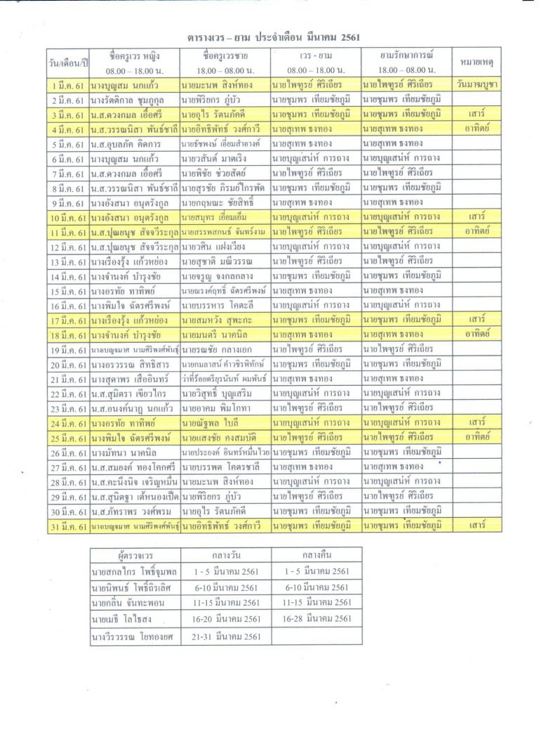 คำสั่งแต่งตั้งข้าราชการครู ลูกจ้างประจำ พนักงานราชการ และลูกจ้างชั่วคราวอยู่เวร-ยามประจำเดือน มีนาคม 2561