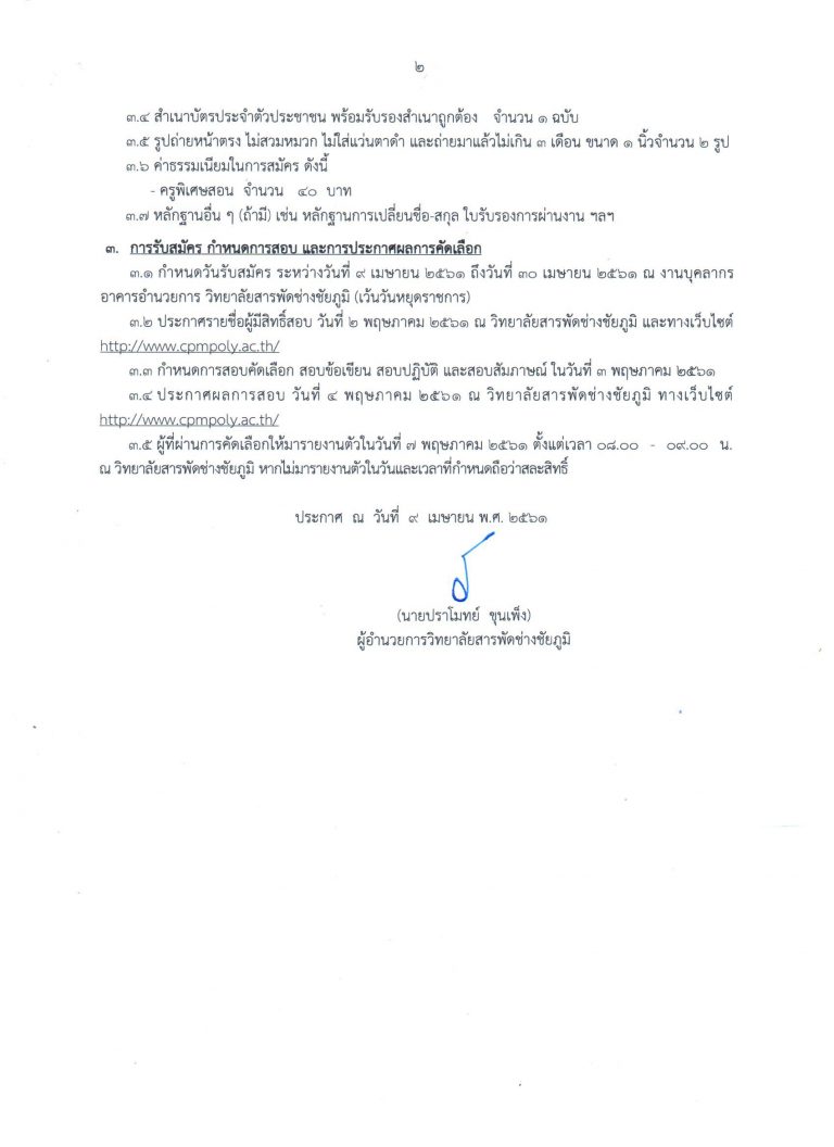 ประกาศวิทยาลัยสารพัดช่างชัยภูมิ เรื่อง รับสมัครบุคคลเพื่อคัดเลือกเป็นลูกจ้างชั่วคราว ตำแหน่งครูอัตราจ้าง แผนกการโรงแรม และแผนกอาหารและโภชนาการ
