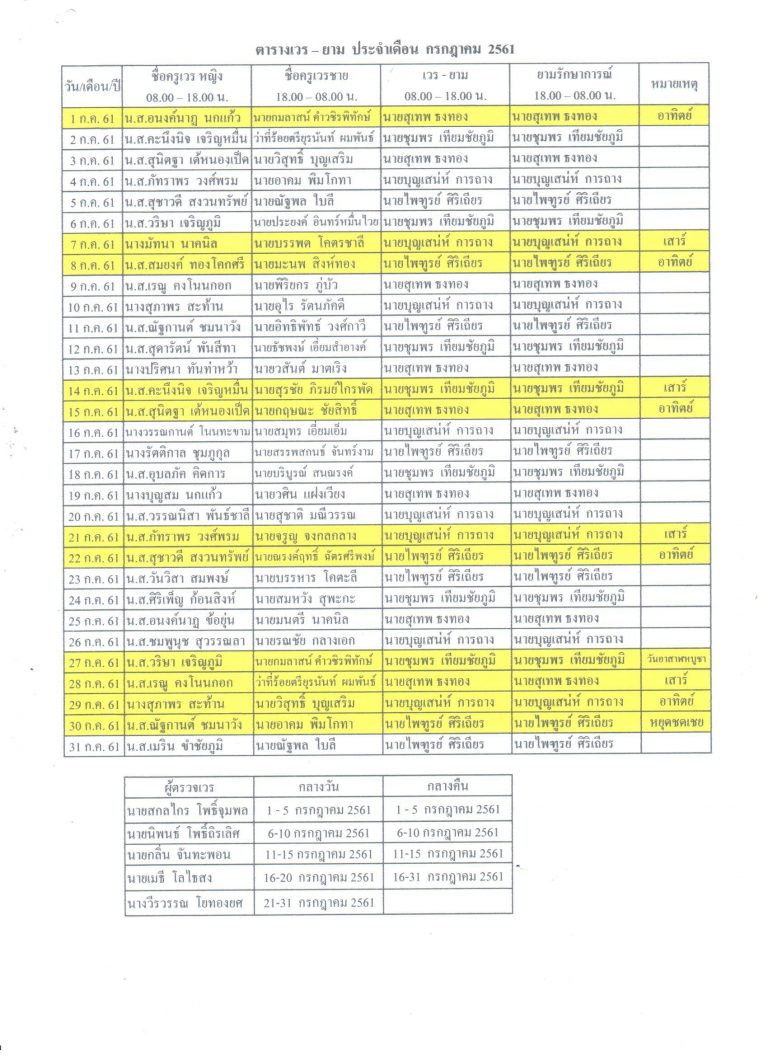 คำสั่งแต่งตั้งข้าราชการครู ลูกจ้างประจำ พนักงานราชการ และลูกจ้างชั่วคราวอยู่เวร-ยามประจำเดือน กรกฎาคม 2561