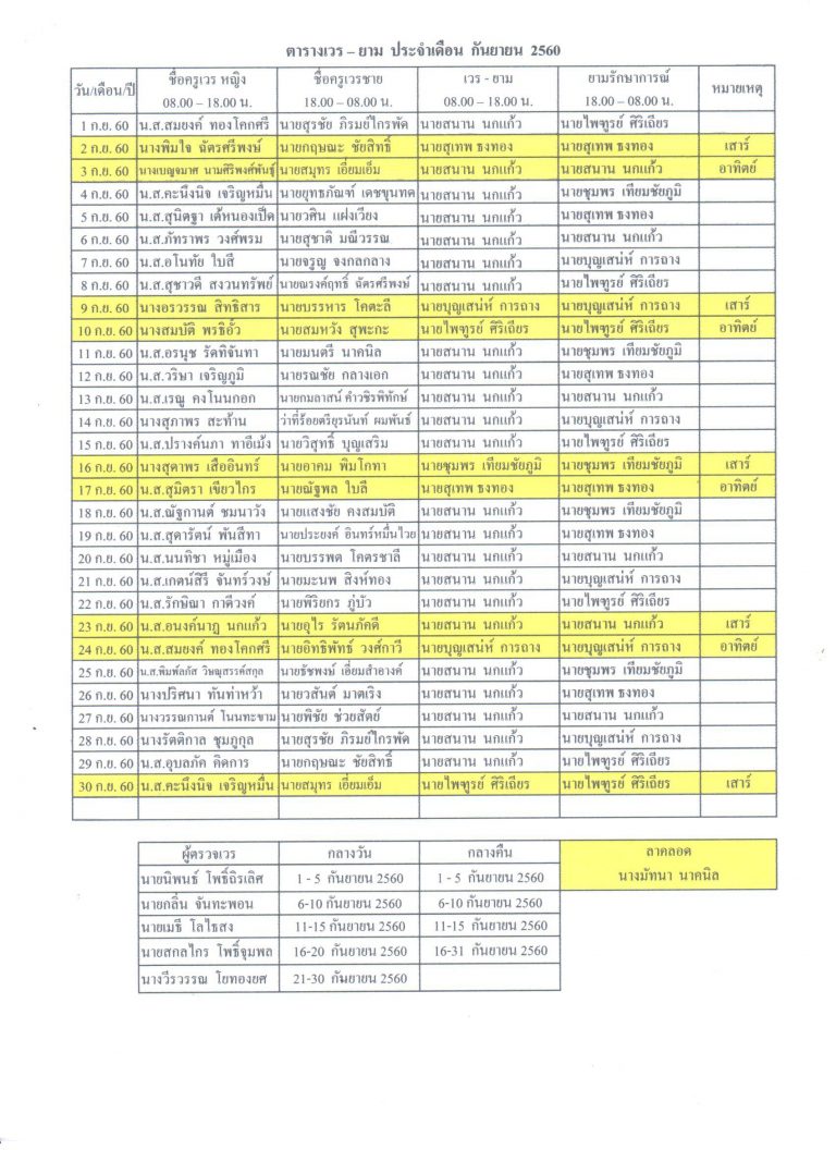 คำสั่งแต่งตั้งข้าราชการครู ลูกจ้างประจำ พนักงานราชการและลูกจ้างชั่วคราวอยู่เวร-ยามประจำเดือน กันยายน 2560