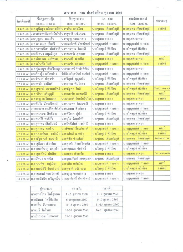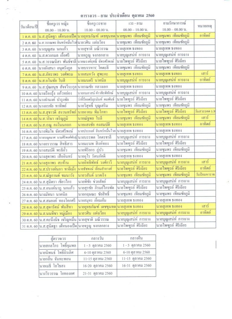 คำสั่งแต่งตั้งข้าราชการครู ลูกจ้างประจำ พนักงานราชการ และลูกจ้างชั่วคราวอยู่เวร-ยามประจำเดือน ตุลาคม 2560