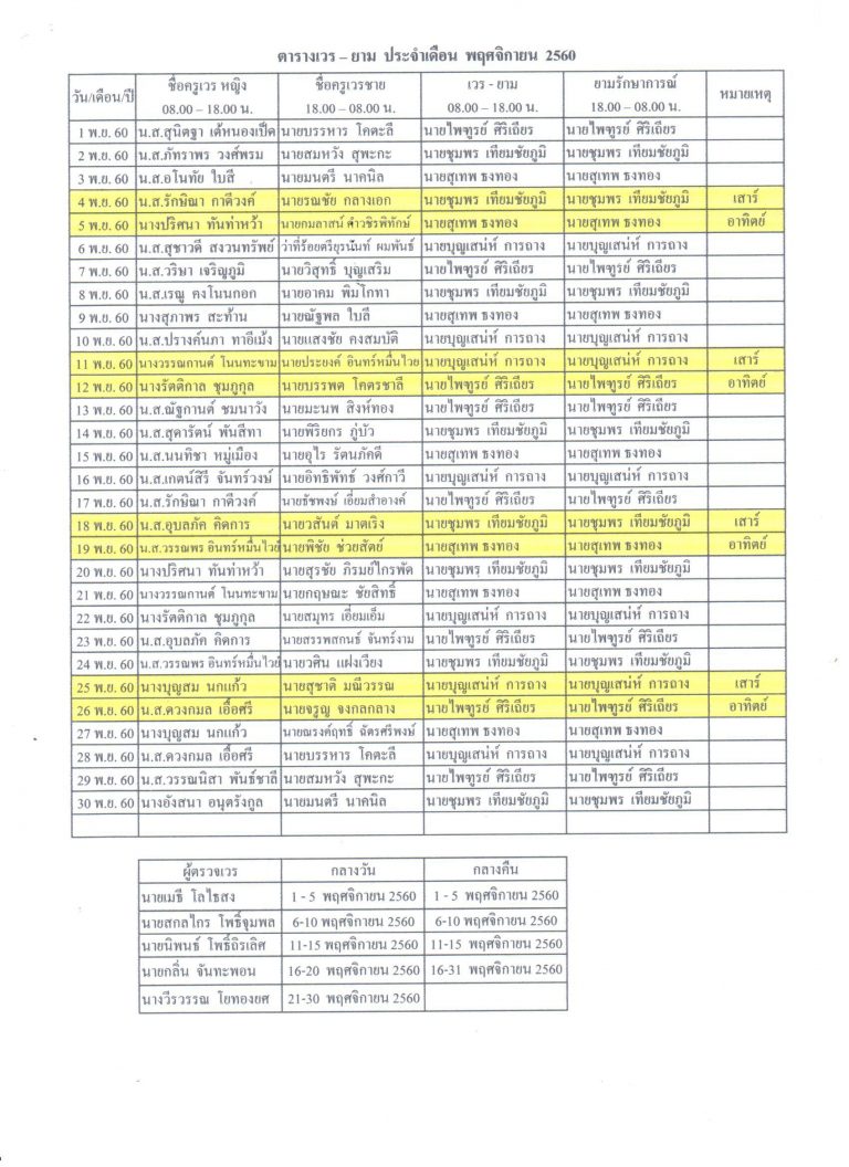 คำสั่งแต่งตั้งข้าราชการครู ลูกจ้างประจำ พนักงานราชการ และลูกจ้างชั่วคราวอยู่เวร-ยามประจำเดือน พฤศจิกายน 2560
