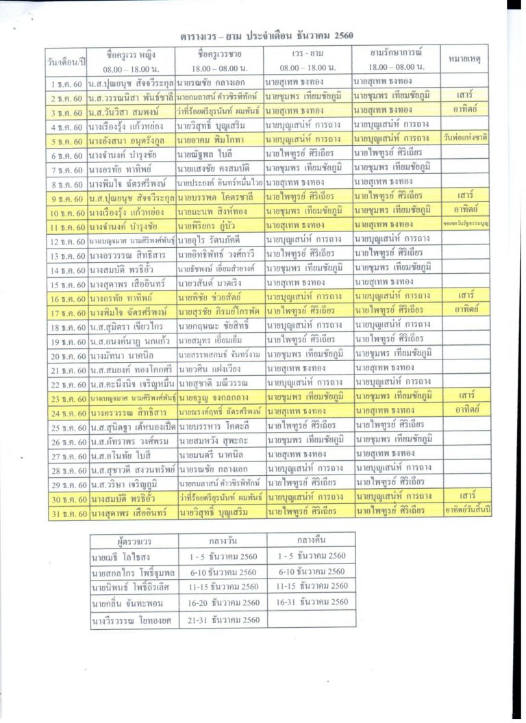 คำสั่งแต่งตั้งข้าราชการครู ลูกจ้างประจำ พนักงานราชการ และลูกจ้างชั่วคราวอยู่เวร-ยามประจำเดือน ธันวาคม 2560