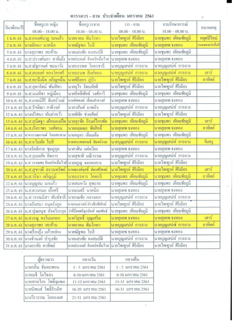 คำสั่งแต่งตั้งข้าราชการครู ลูกจ้างประจำ พนักงานราชการ และลูกจ้างชั่วคราวอยู่เวร-ยามประจำเดือน มกราคม 2561