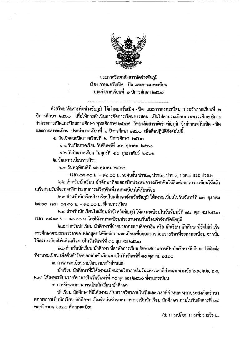กำหนดปิด-เปิดภาคเรียนและรายละเอียดค่าใช้จ่ายการลงทะเบียน 2/2560