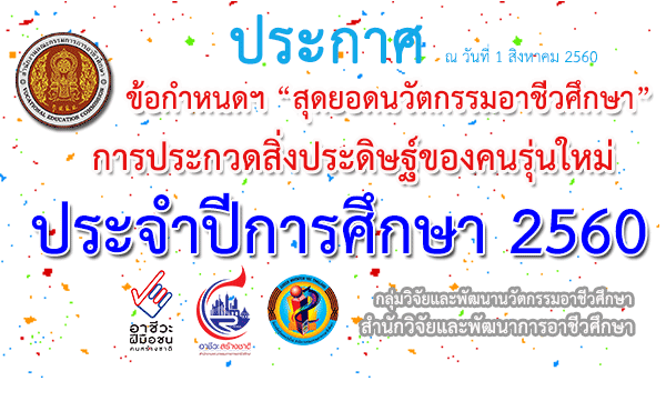 ประกาศใช้ข้อกำหนด กติกา และเกณฑ์มาตรฐาน การตัดสินให้คะแนน “สุดยอดนวัตกรรมอาชีวศึกษา” การประกวดสิ่งประดิษฐ์ของคนรุ่นใหม่ ประจำปีการศึกษา 2560