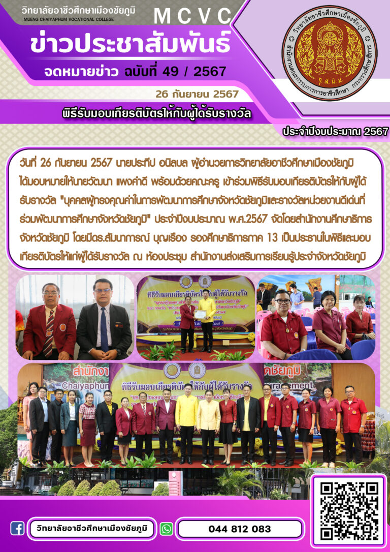 จดหมายข่าว ฉบับที่ 49 วันที่ 26 กันยายน 2567