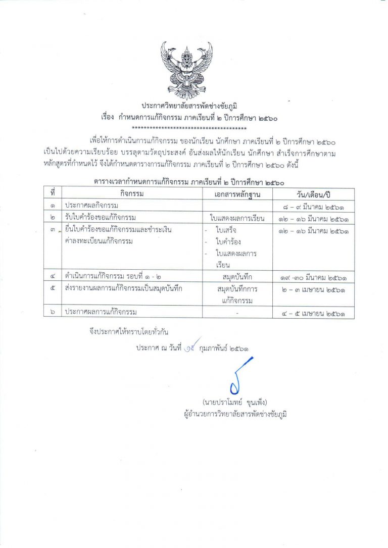 กำหนดการแก้กิจกรรม ภาคเรียนที่ 2 ปีการศึกษา 2560