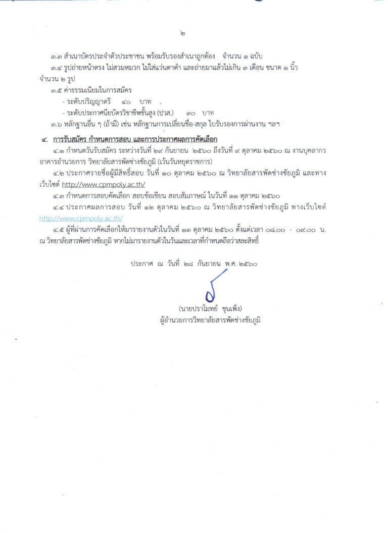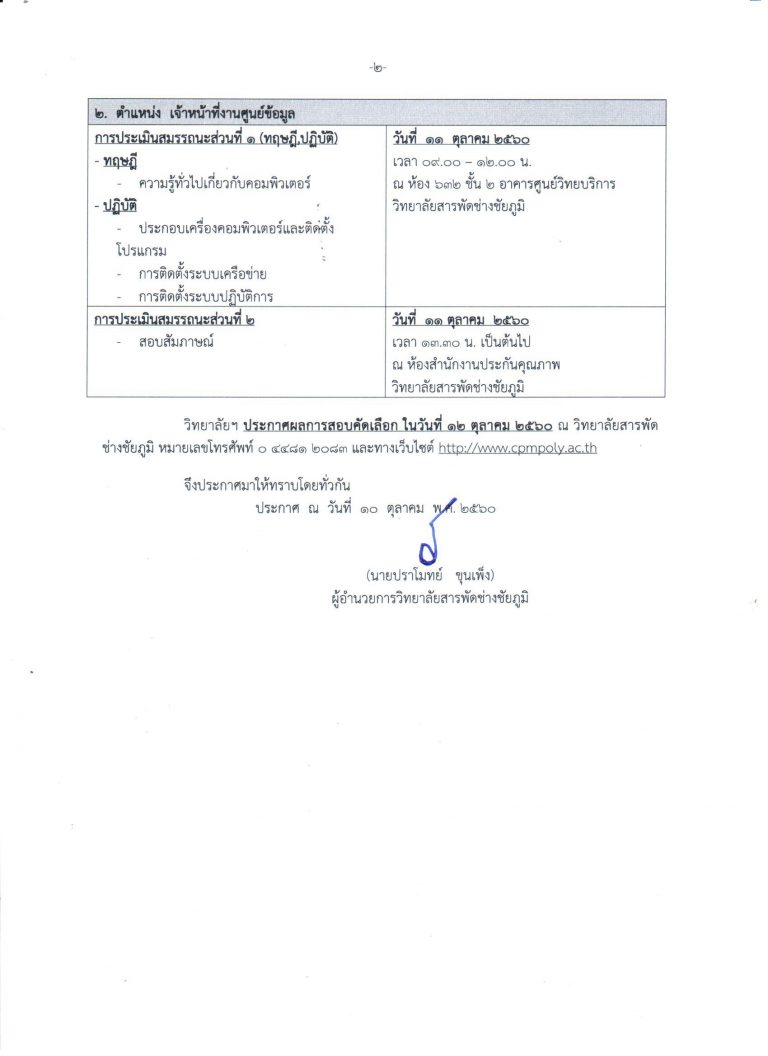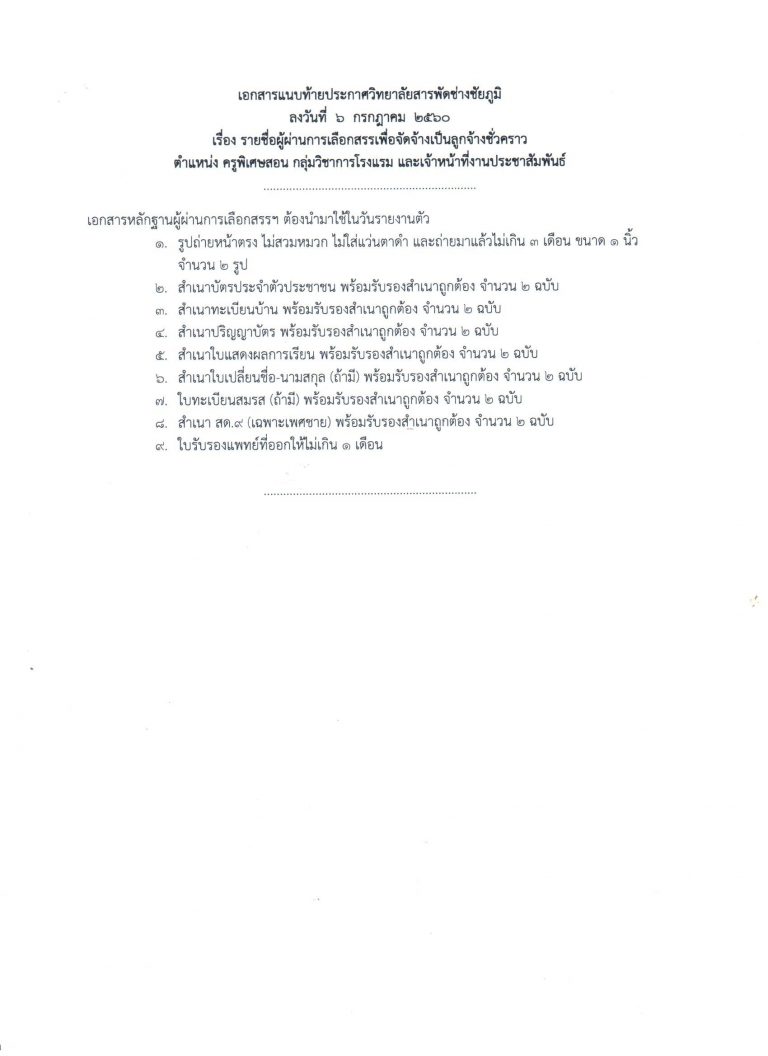 ประกาศรายชื่อผู้ผ่านการเลือกสรรเพื่อจัดจ้างเป็นลูกจ้างชั่วคราว ตำแหน่ง ครูพิเศษสอน กลุ่มวิชาการโรงแรม และเจ้าหน้าที่งานประชาสัมพันธ์