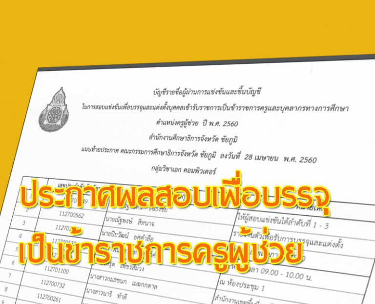 ประกาศผลสอบครูผู้ช่วย จังหวัดชัยภูมิ