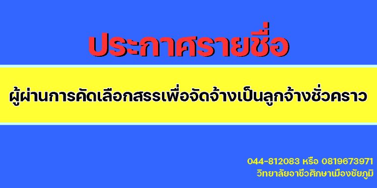 ประกาศรายชื่อผู้ผ่านการคัดเลือกสรรเพื่อจัดจ้างเป็นลูกจ้างชั่วคราว