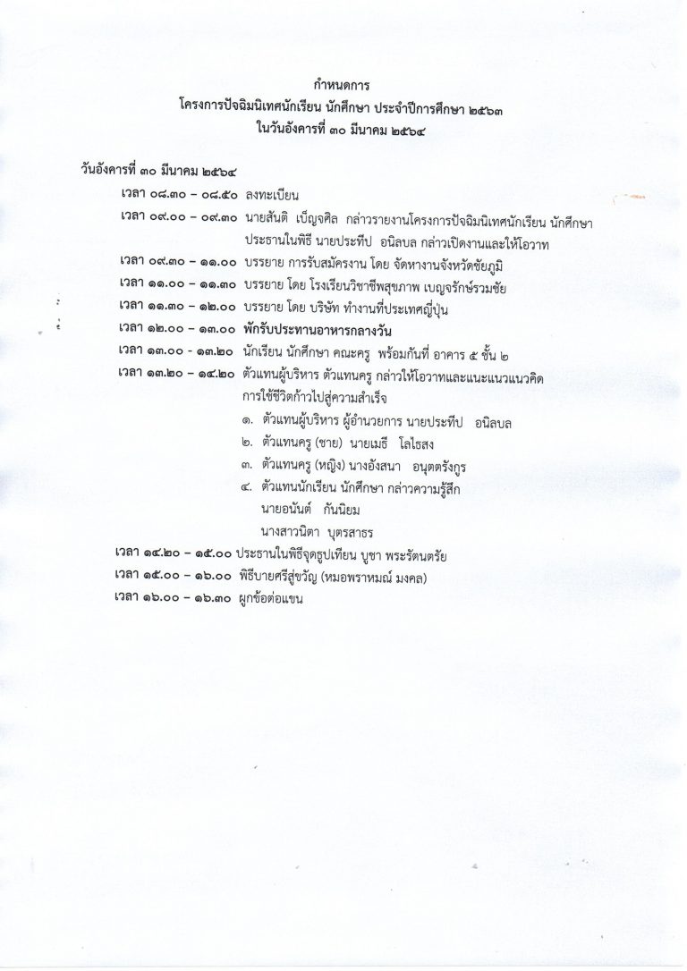 วันที่ 30 มีนาคม 2564 โครงการปัจฉิมนิเทศ นักเรียน – นักศึกษา จำปีการศึกษา 2563 ณ วิทยาลัยสารพัดช่างชัยภูมิ