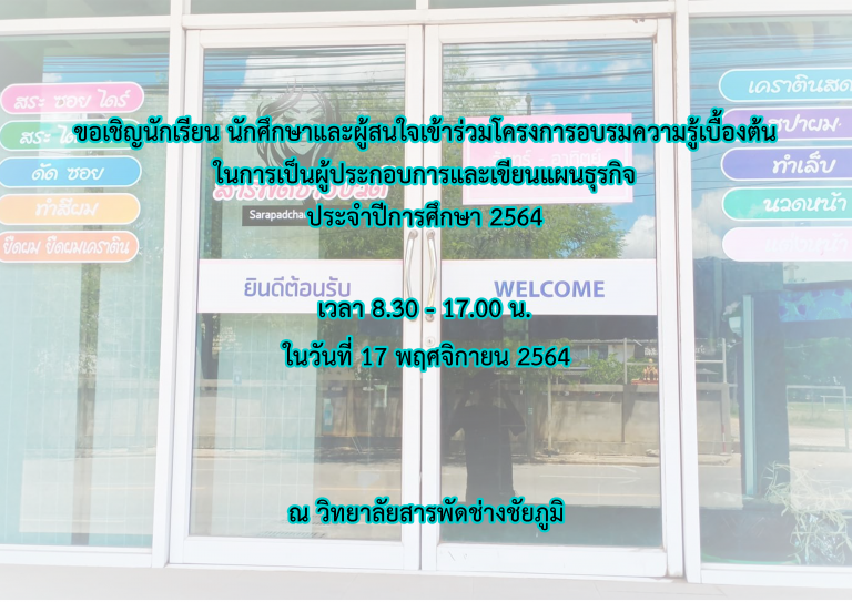 ขอเชิญนักเรียน นักศึกษาและผู้สนใจเข้าร่วมโครงการอบรมความรู้เบื้องต้นในการประกอบการและเขียนแผนธุรกิจ