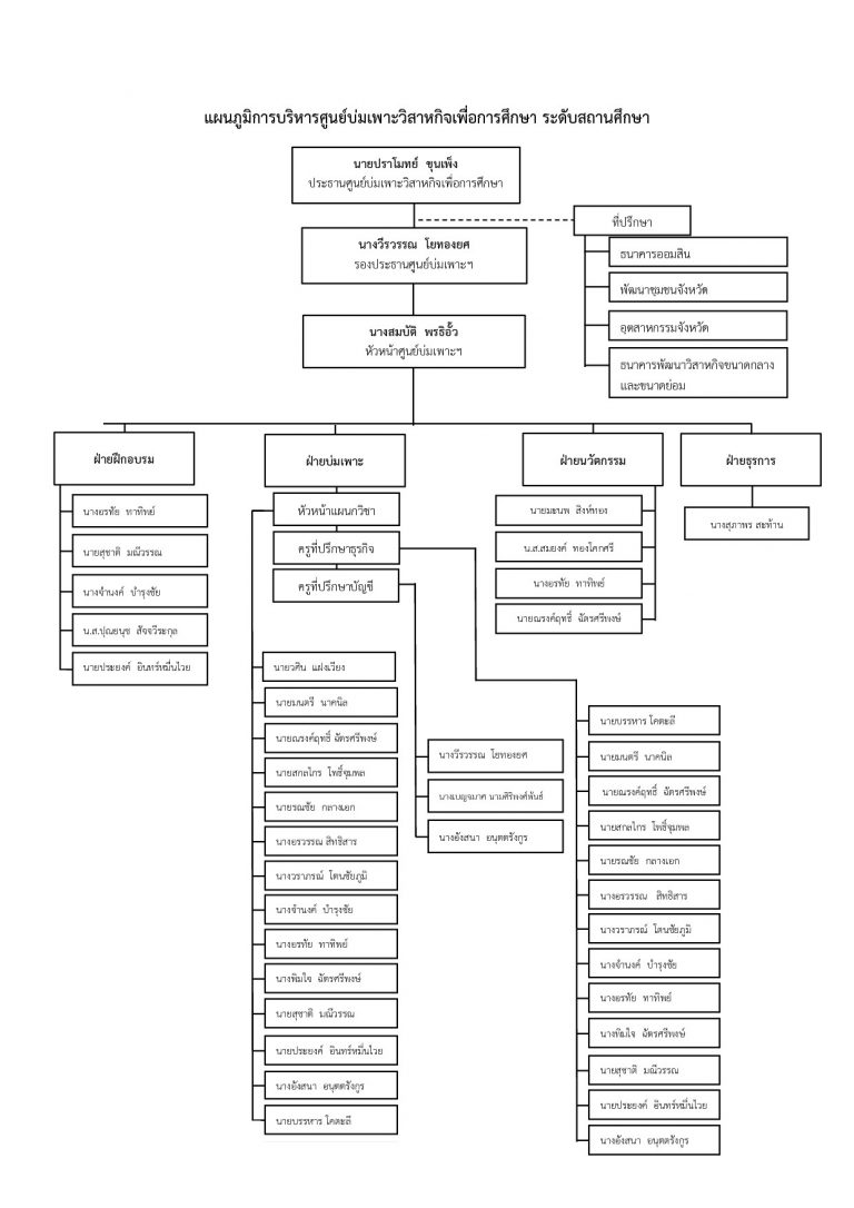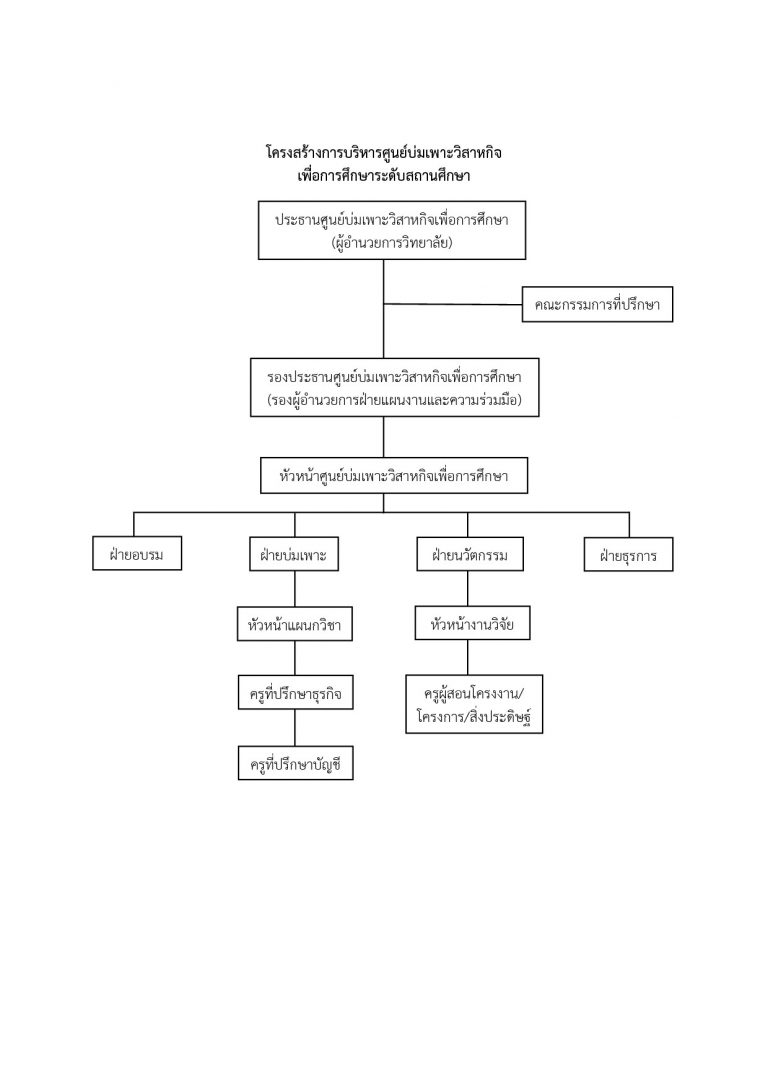โครงสร้างการบริหารศูนย์บ่มเพาะวิสาหกิจ เพื่อการศึกษาระดับสถานศึกษา